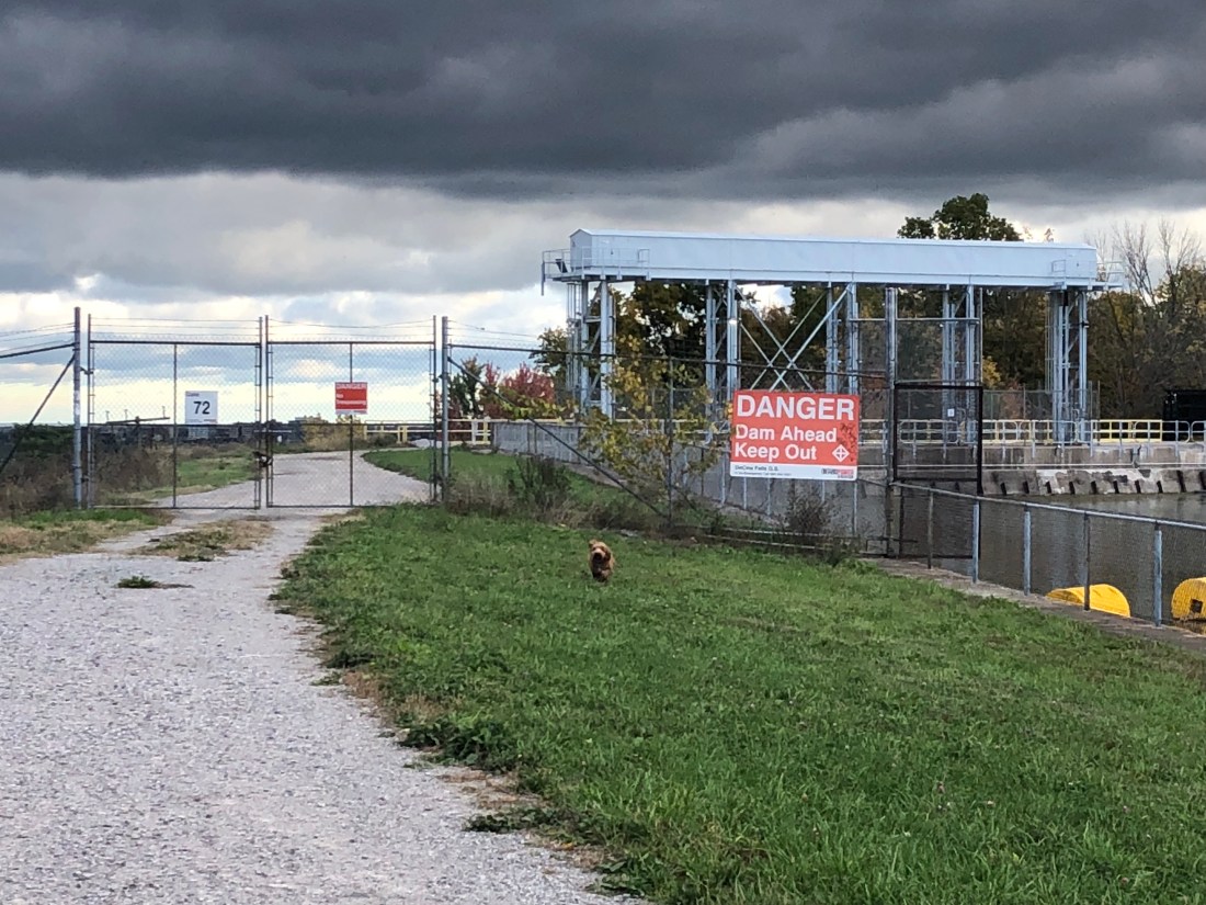 The first part of the hike took us along the shores of Lake Gibson and Lake Moodie (where the dogs cooled off last time). These lakes are completely man made. Fed by water from the Welland Canal, they formed behind a hydro dam sitting right on the edge of the escarpment.