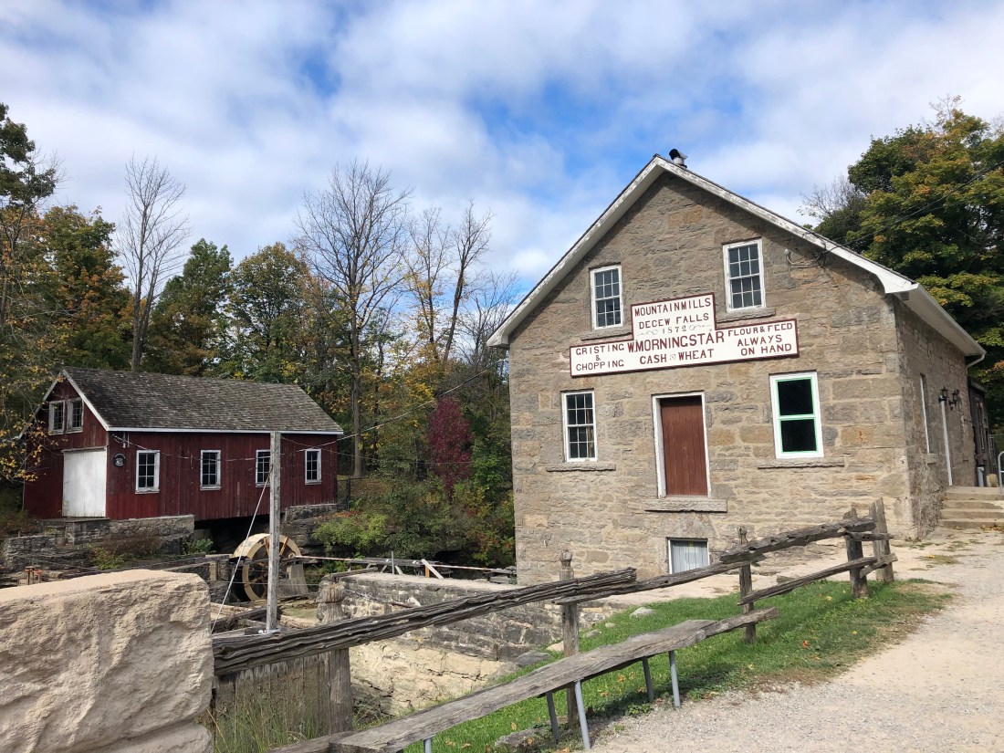 When we arrived at our vehicle, I realized that we hadn’t seen Morningstar Mill. A 19th century mill that is still operational, we had looked forward to visiting it. I looked at the map – we should have passed it – how did we miss it?? Well my Bruce Trail guide book was published in 2014 and I guess there are constant updates of trail closures and reroutes. By looking on the website, we discovered that 1.9km of the trail by the mill had been rerouted through the park to a new 3.5km trail. We hadn’t hiked the planned 10.7km – we had hiked 12.3! Going forward we will always check the website. Now off to the mill by car..