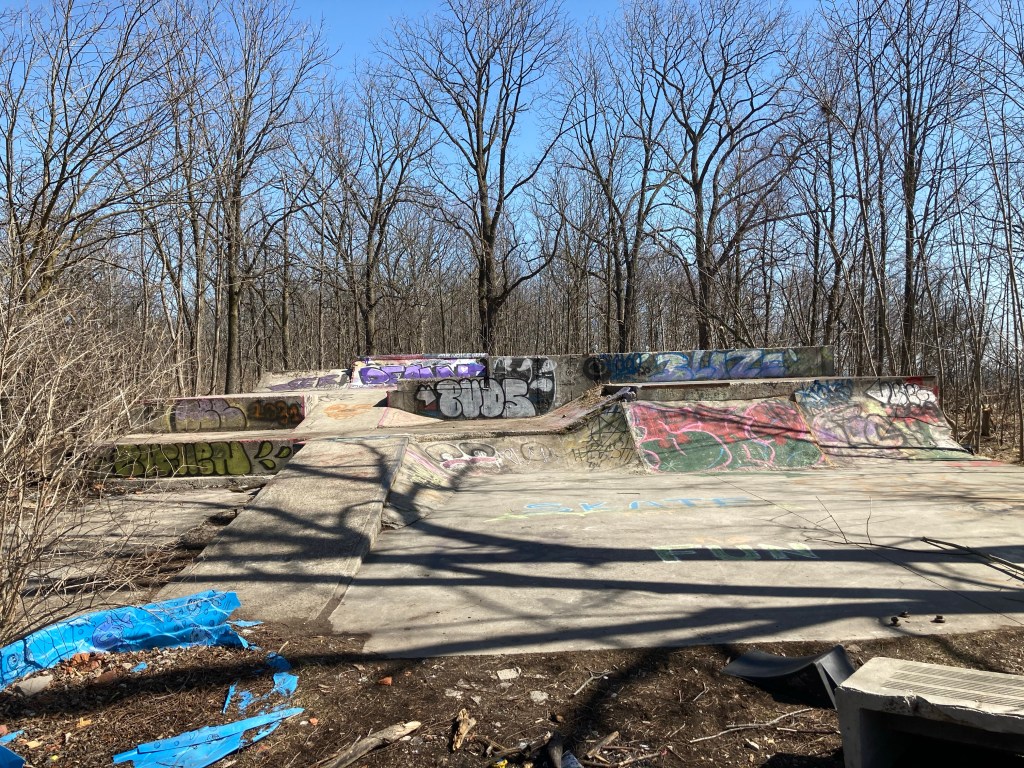 Kirkby knew part of the story of how it was built on an abandoned home construction site. I did some Googling and found out a couple of things. What seems to be true is that it was built as part of a competition amongst skateboard enthusiasts. See this link from 2012:
