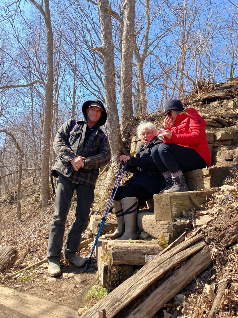 Kim’s family is fully rooted in the local Niagara Escarpment. On this day we hiked, with her eldest brother Kirkby, from Kim’s house to her father’s house, past Kirkby’s house and on to her mother’s house. Kim’s mother Anne then joined us and we hiked to the tunnel under Highway 6 that Kirkby had a role in constructing. All of this was within the 7km distance that we travelled that day with barely a waver from the true Bruce Trail.