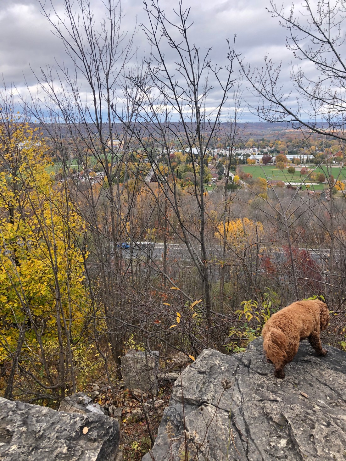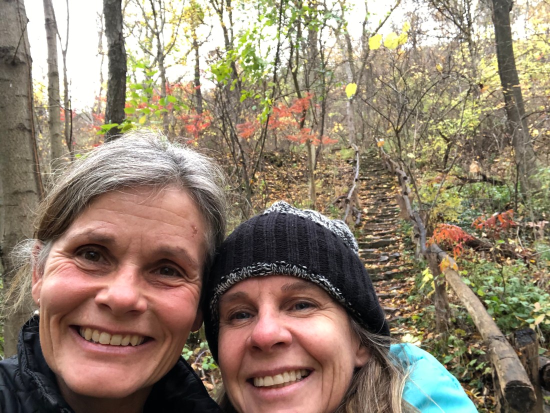 It was also different because we had to get Kim’s car to a dealership for a repair and we involved Johnny. Leaving the farm early in the morning, Johnny and I took two vehicles and crawled in traffic to our endpoint on the Chedoke rail trail in the west end of Hamilton to drop a vehicle. And that wasn’t easy as the mass of dog walkers and early morning hikers had all of the parking spots taken. Then we drove to Kim’s house in Dundas and followed her to the dealership in Burlington (yes all in morning rush hour traffic). We dropped Kim’s car and then, after searching for a coffee and bathroom spot, took the QEW over the Skyway Bridge (another congested morning route) to the East End of Hamilton to drop us to the starting point where we then became lost, as there are apparently two Greenfield Avenues now separated by the Red Hill Expressway. I believe Johnny was more than relieved to finally get us out of the vehicle and onto the muddy Escarpment trail! I’m not sure he will participate again ….Kim did say that she had not seen Johnny get so quiet before and that it reminded her of Brett when his patience was tried. Hey – any reminder of a loved one passed feels welcome when you are grieving – like a little something to hold on to.