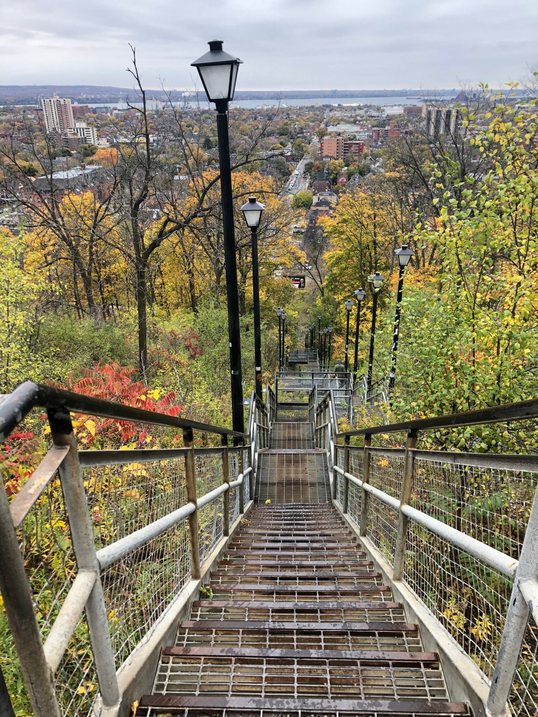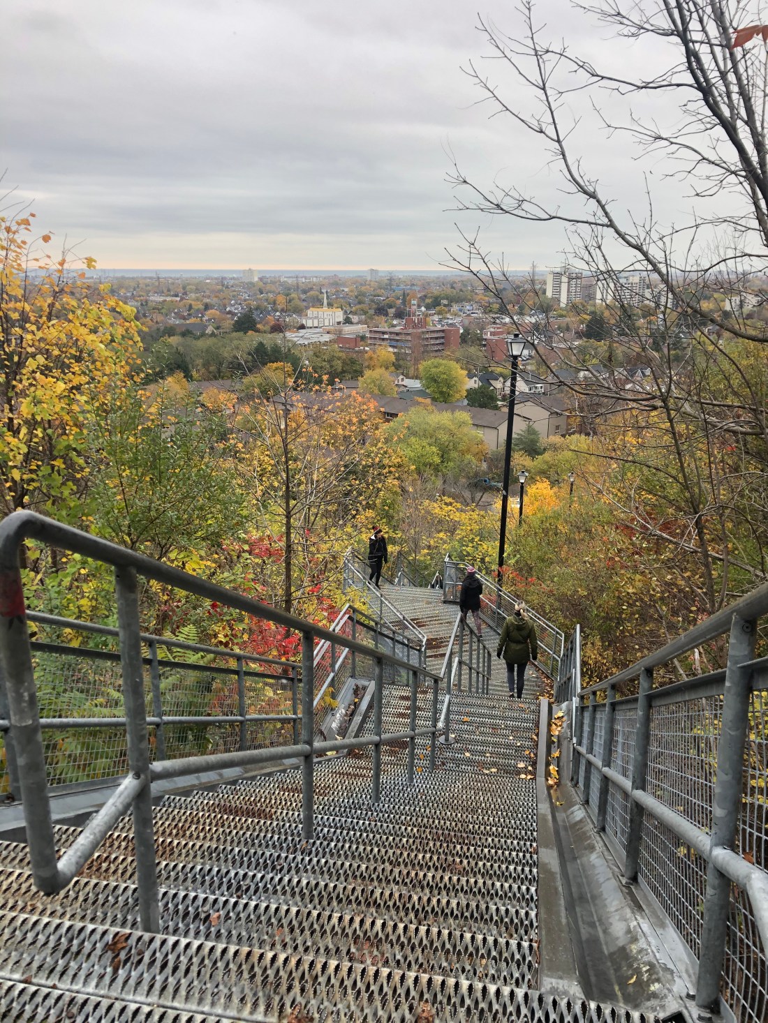 The Kenilworth stairs are divided into an upper and lower portion. Here we are looking down at the lower portion called the “Kimberley Stairs” which are 288 steps down to Kimberley Avenue in the east end of the city.
