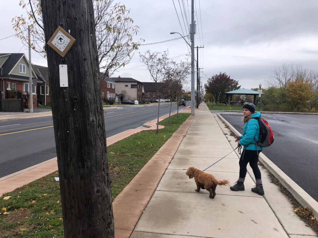 The next part of the “Trail” travelled over 2km along Hamilton mountain streets between Upper Wentworth and West 5th. If you ever walk these streets, now you might notice the Bruce Trail signs.